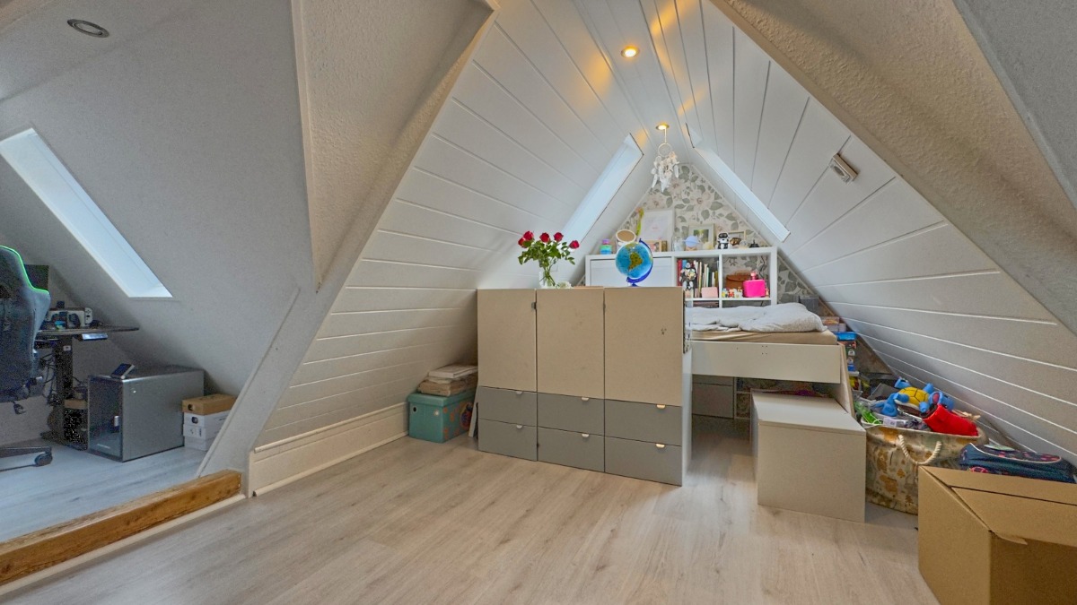 Über die Wendeltreppe ist der ausgebaute Spitzboden (Nutzfläche) zu erreichen und offeriert noch einmal Platz für ein HomeOffice, Hobbyraum oder Staufläche. Natürlich befindet sich eine Heizung ebenfalls hier.