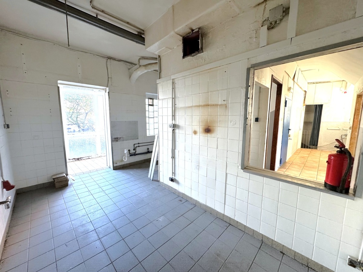 Weiterhin gelangst du hinter dem Tresen zur Küche, welche eine praktische Durchreiche hat. Die Küche ist leer, du kannst sie genauso gestalten, wie du sie benötigst. Hinter der Küche ist eine abgeschlossene Loggia, von der du durch eine Tür den Hinterhof erreichst. Als Mitarbeitereingang perfekt geeignet.