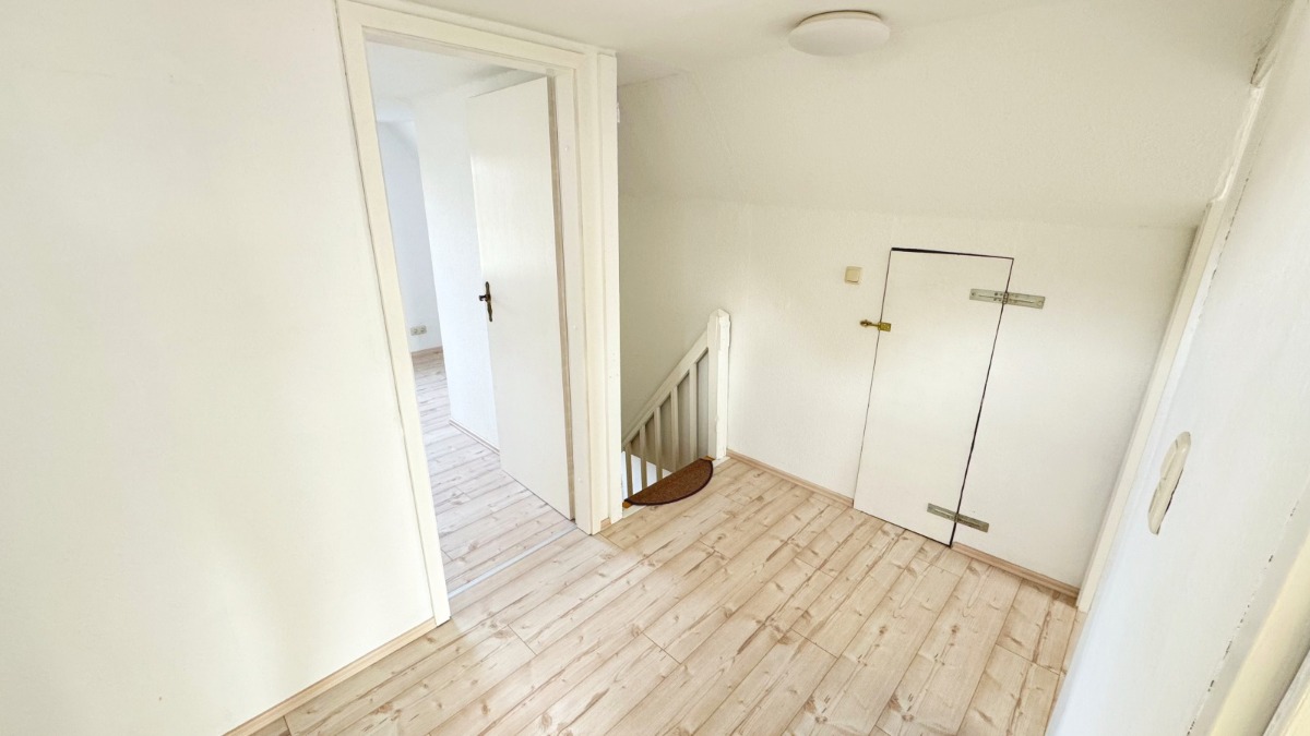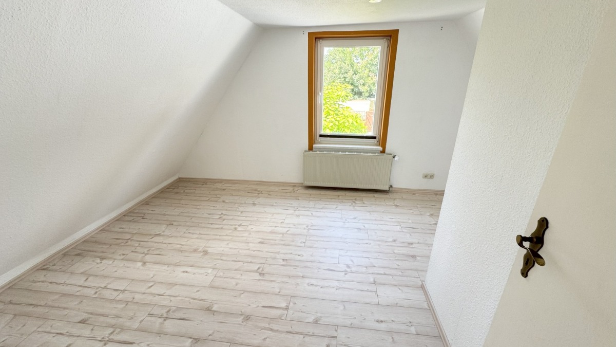 Im Obergeschoss befinden sich zwei großzügige Schlafzimmer und ein weiterer Raum (Nutzfläche) mit Blick in den Garten. Der Flur bietet ebenso wie die Abseite weiteren Stauraum. Alle Räume sind modern und bezugsfertig.