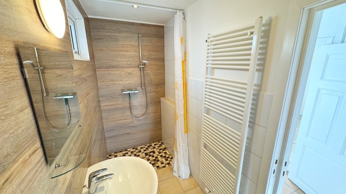 Doch nicht nur das verleiht diesem Zuhause einen besonderen Charme. Es wurde auch ein modernes Duschbad eingebaut und eine passende Küche gezaubert. Schauen wir es uns gemeinsam an.