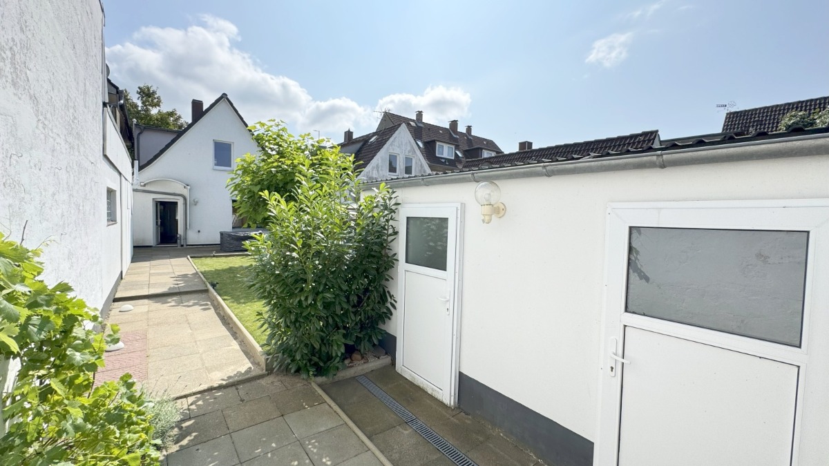 Sollte die Stauflache nicht reichen, dann gibt es im Gartenschuppen ausreichend Platz. Neben Gartengeräten finden auch Fahrräder und größere Dinge hier ein Plätzchen. Der Grill kann hingegen auf der Terrasse stehen und auch die Außenanlagen wurden in den letzten Jahren hergerichtet. Der Sommer kann kommen.