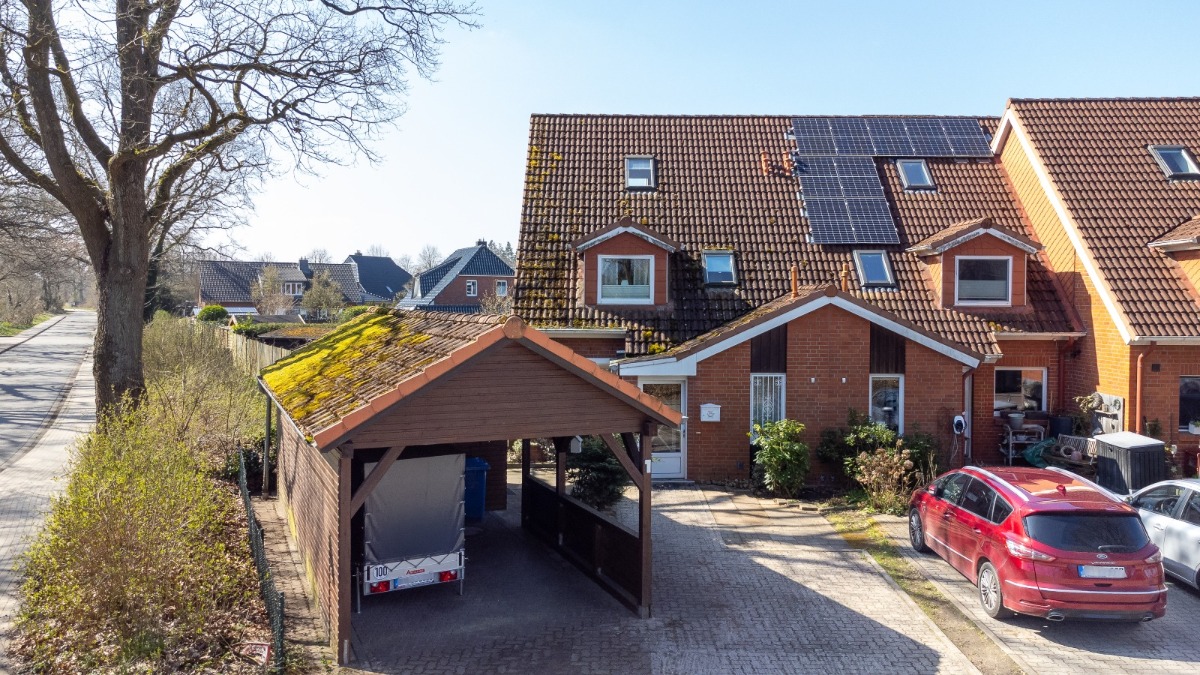 Es ist in einen zeitlosen Klinker gehüllt und du wirst direkt den gepflegten Zustand der Häuserreihe sehen. Durch deinen Vorgarten, vorbei am geräumigen Carport, gelangst du zu deinem Windfang mit Platz für die Schuhe. Trittst du hindurch erreichst du den Eingang und findest Platz für die Garderobe. Direkt angrenzend ist der große Haustechnikraum (HTR) gelegen, mit Stellmöglichkeit für die Waschmaschine und den Trockner. Überdies ist weitere Staufläche hier ausreichend vorhanden.