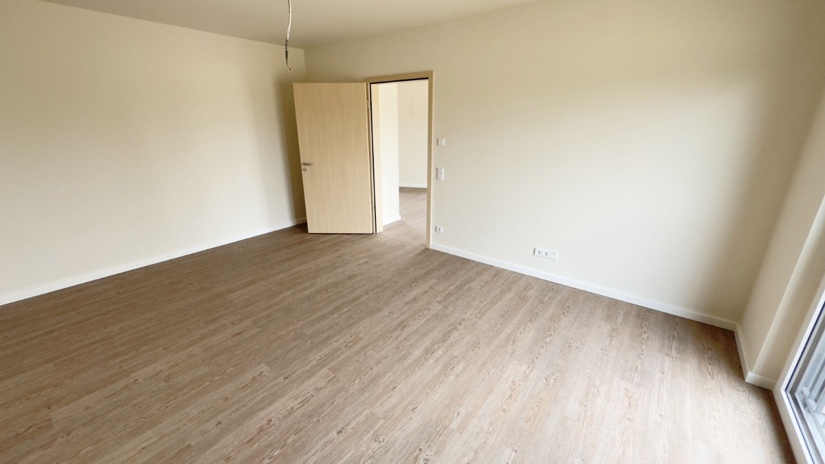 Die Bodenbeläge in der Wohnung bestehen aus einem Vinylboden und Fliesen im Bad. Überall gibt es eine Fußbodenheizung.