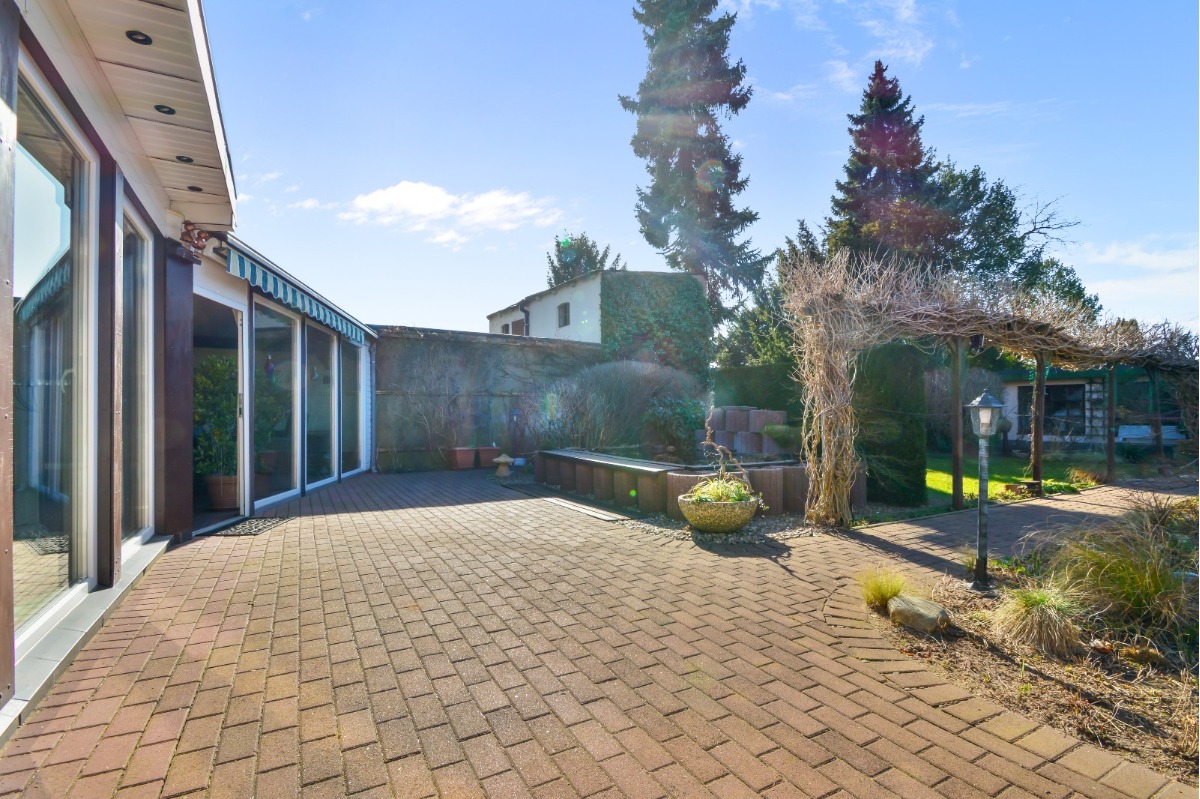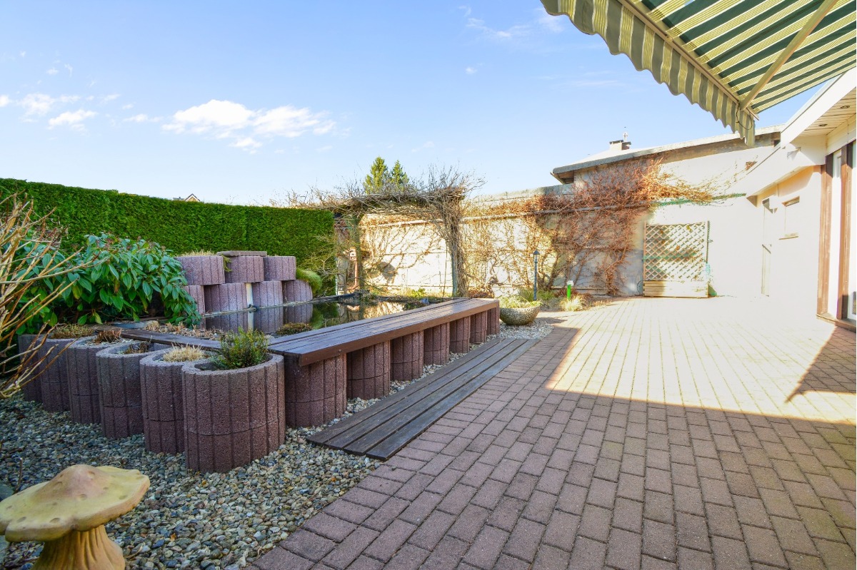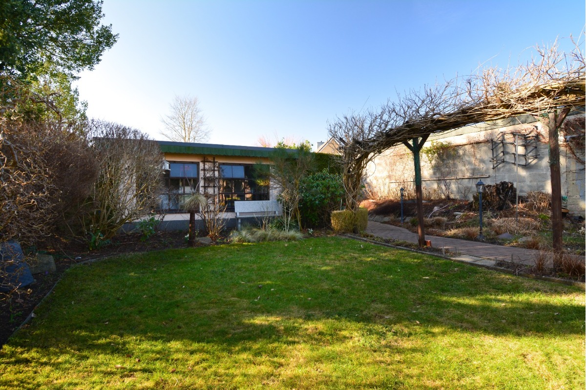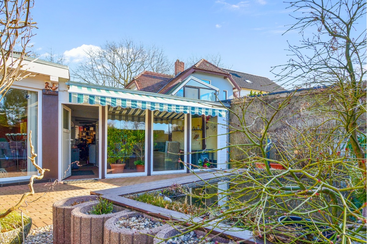 Die Garage wird aktuell für Fahrräder genutzt, ein Rückbau zur Fahrzeuggarage wäre problemlos möglich. Durch die Garage kommst du in den Wintergarten und auf die Terrasse bzw. andersrum auf die Auffahrt ohne durch das Haus zu müssen. Für deine zukünftige Planung könnte es interessant sein, dass für den hinteren Teil des Grundstücks ein positiver Bauvorbescheid vorliegt. Die Zufahrt würde verlängert werden, dafür müsste die Garage weichen.