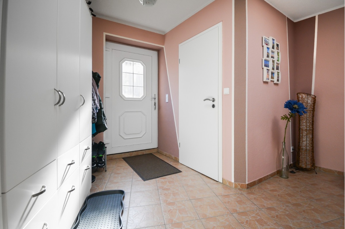 Von der Straße aus siehst du ein niedliches Einfamilienhaus. Was sich dahinter verbirgt, erahnst du im ersten Moment nicht. Im Jahr 2009 wurde ein großer Anbau an das bestehende Haus errichtet, sodass es viel Wohnfläche und schöne Räume dazugewonnen hat.